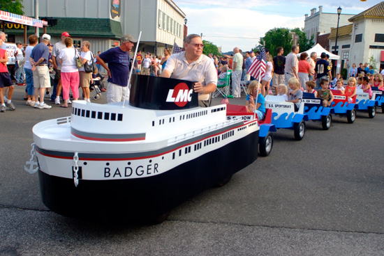 A children's flotilla that's a miniature replica of the historic S.S. Badger carferry. Children get to ride in one of many "cars".