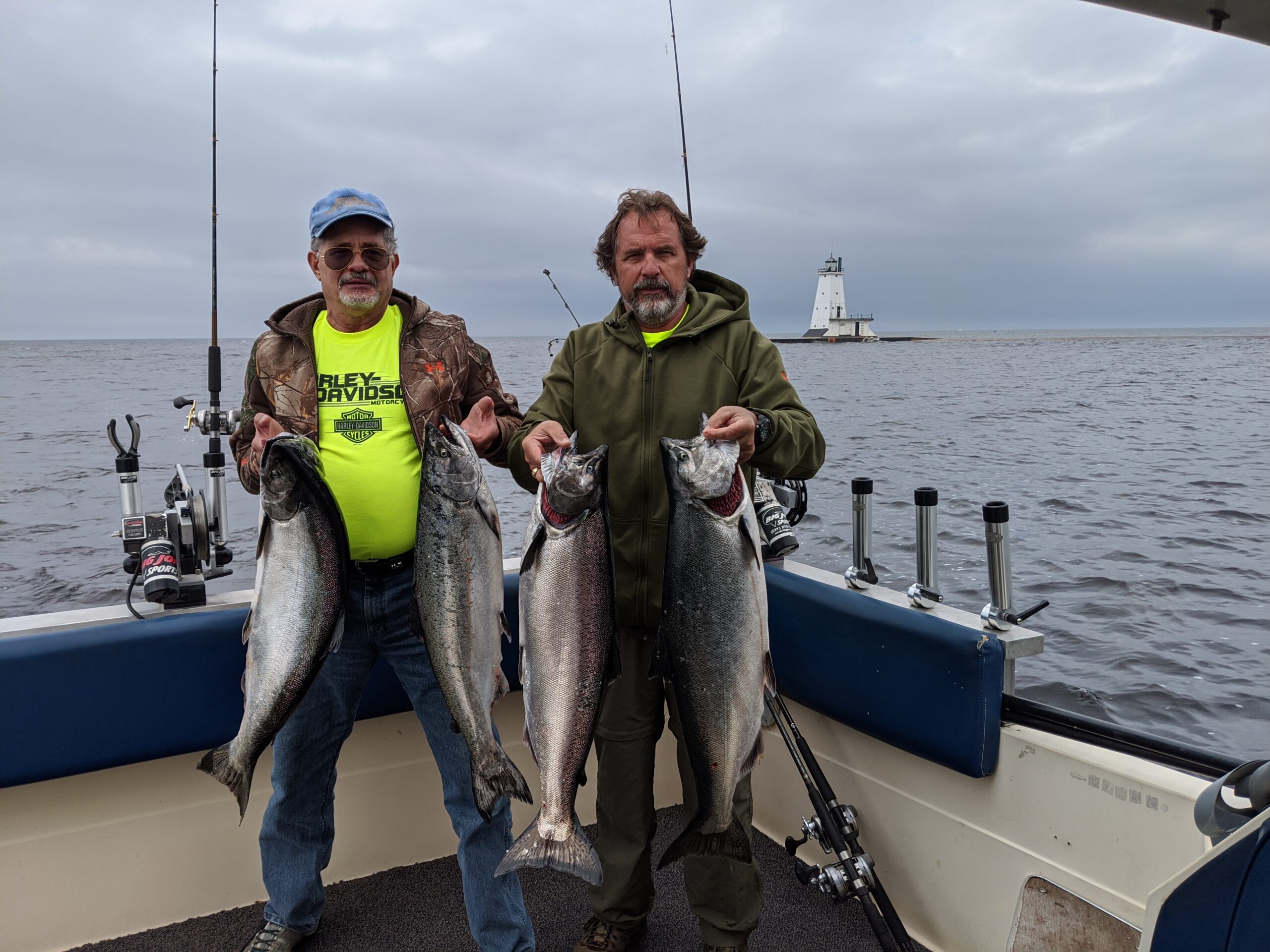 Lake Michigan —Still had warmer water. Coho and steelhead were hitting spoons 50 to 90 feet down in 200 to 400 feet where the cooler water was found. Pier anglers caught small coho on spawn. — Reported by the Michigan DNR on 9/26/19.