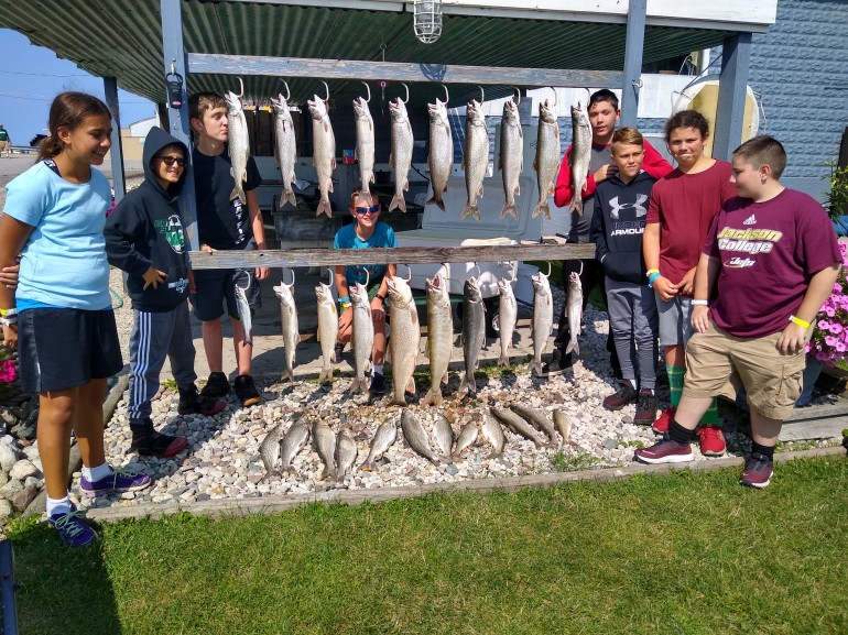 Some of the kings we caught offshore this week, and a great group of YMCA camp kids on a 2 boat trip HATTRICK AND RAPTOR pounding on the trout.