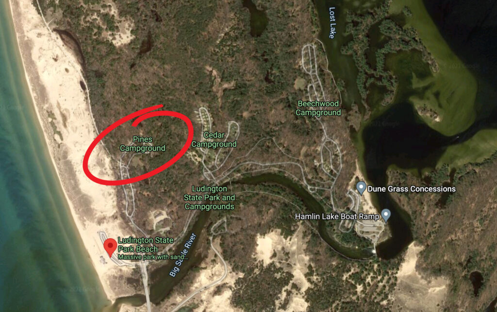 The Pines Campground has 98 modern sites with electricity (some with 50 amp service), modern showers & restrooms, mini-cabin, and certain handicap accessible sites. From this campground you can head out on the Logging Trail to the north or the Lighthouse Trail to the northwest which takes you out to Big Sable Point Lighthouse.