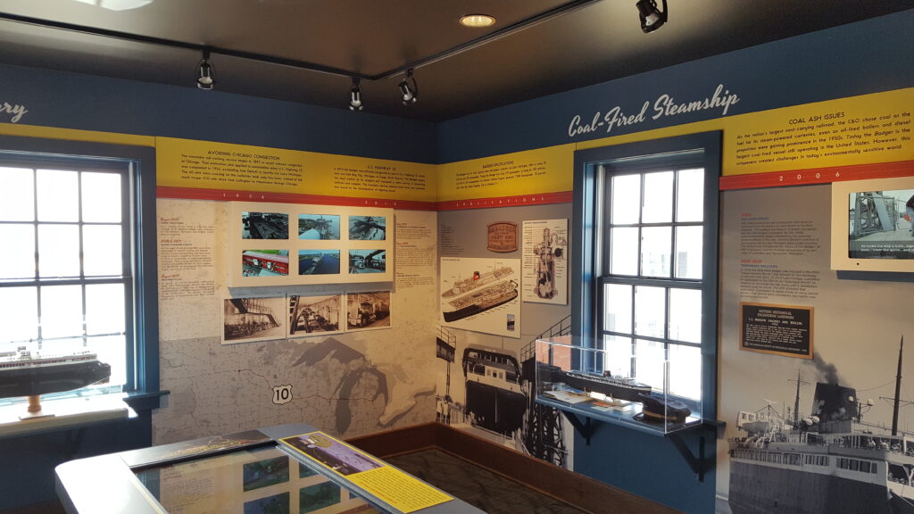 The third floor of the museum features an exhibit dedicated specifically to the S.S. Badger carferry. Though several exhibits in the museum tell the full story of Ludington’s carferry industry, the Badger itself continues to be an important historical and cultural icon of Ludington’s maritime heritage. The exhibit explores the history of the Badger from its time as one of the railroad carferries, through the present day.